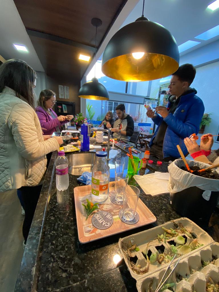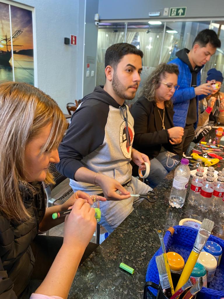A primeira atividade da Semana Ecológica foi a oficina criativa promovida em parceria com a empresa “Criarte – Crafteria”. Nessa oficina, os participantes tiveram a oportunidade de expressar a si mesmos utilizando materiais em desuso, que, ao invés de poluir a natureza, foram transformados em verdadeiras obras de arte, com a identidade de cada participante sendo expressada nos itens produzidos. Essa abordagem criativa não apenas despertou a imaginação de todos, mas também transmitiu uma mensagem poderosa sobre a importância de repensar o consumo e buscar alternativas sustentáveis em nosso dia a dia.
